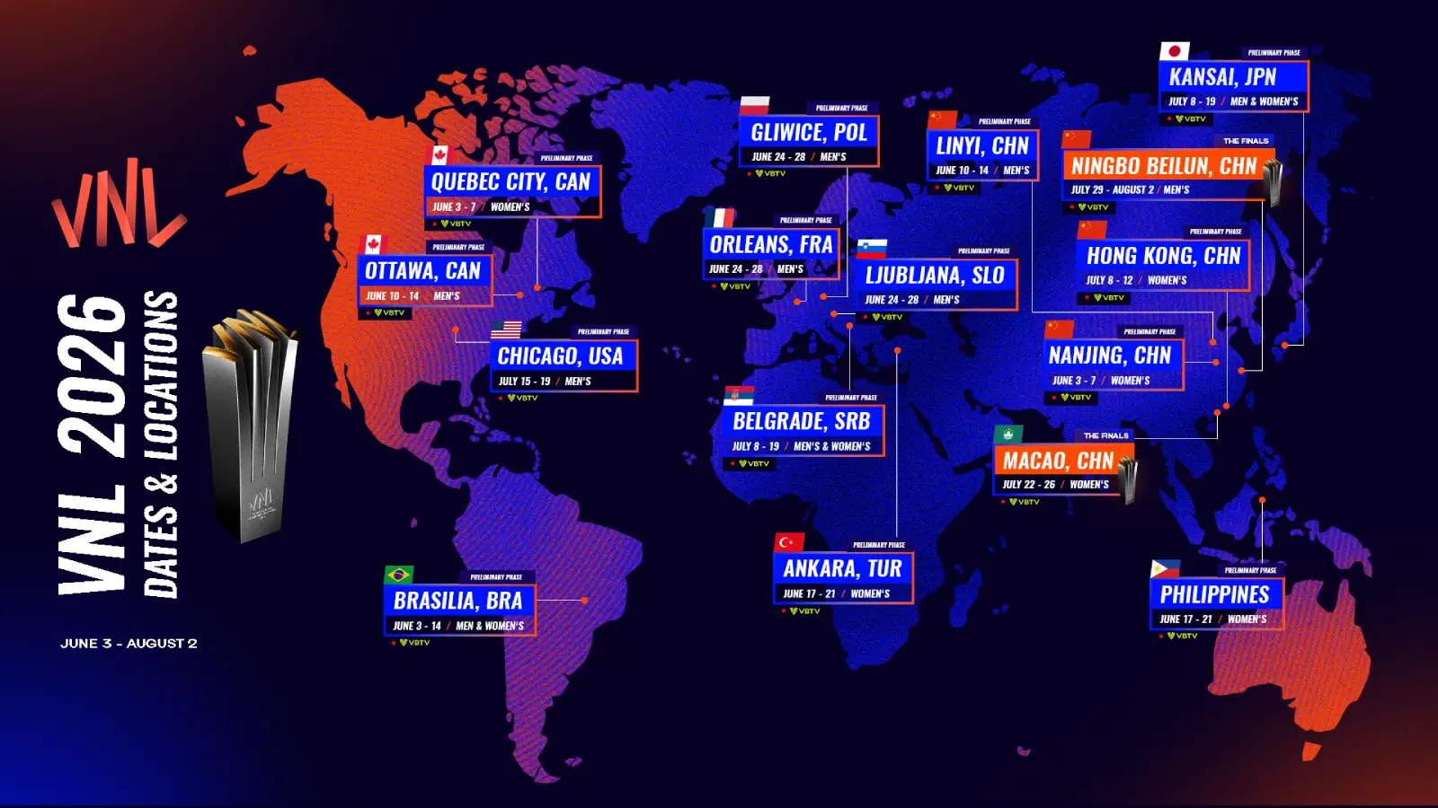 Toutes les étapes de la Volleyball Nations League 2026